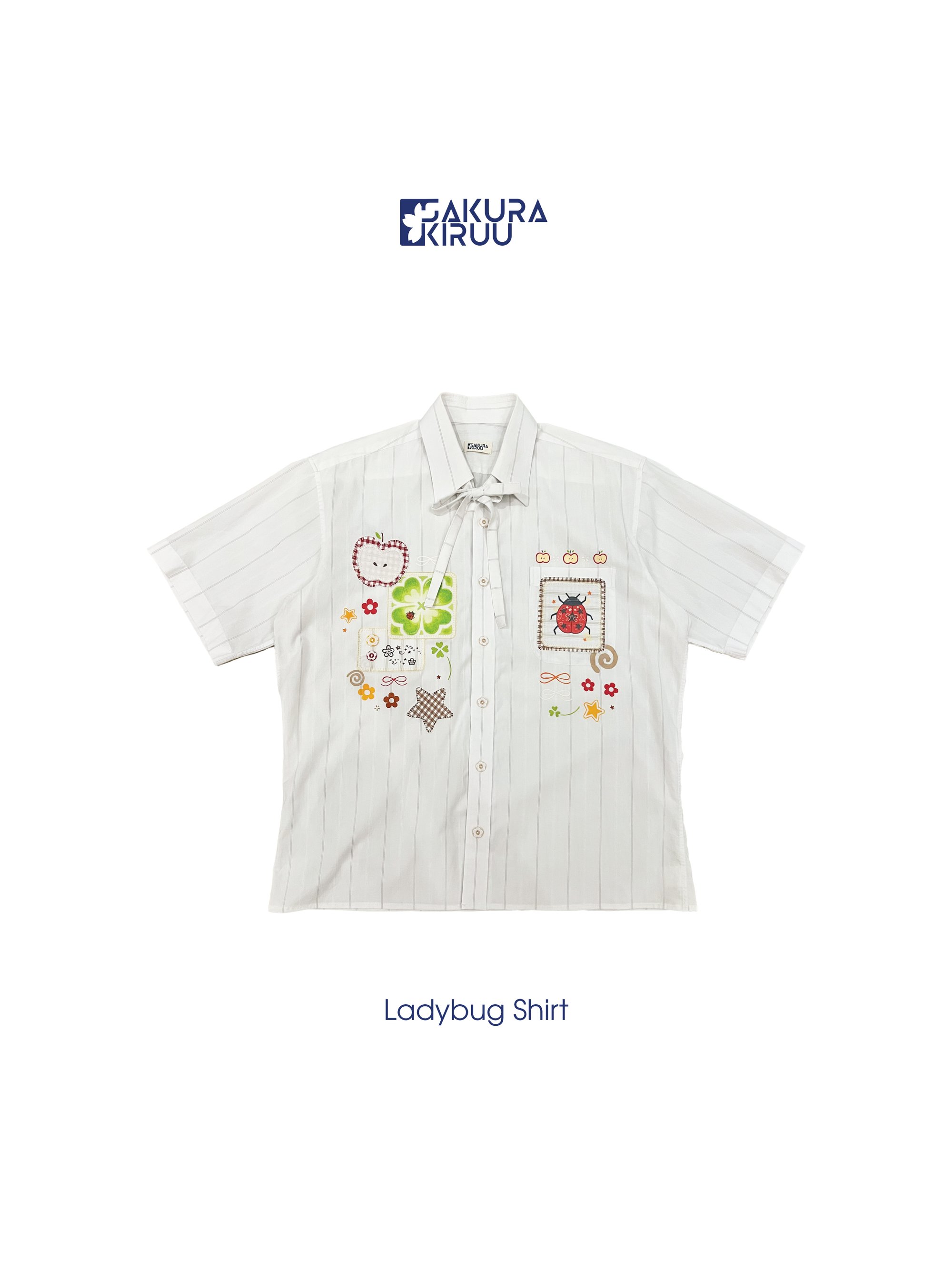 SAKURAKIRUU’s Ladybug Shirt in white-light grey stripes